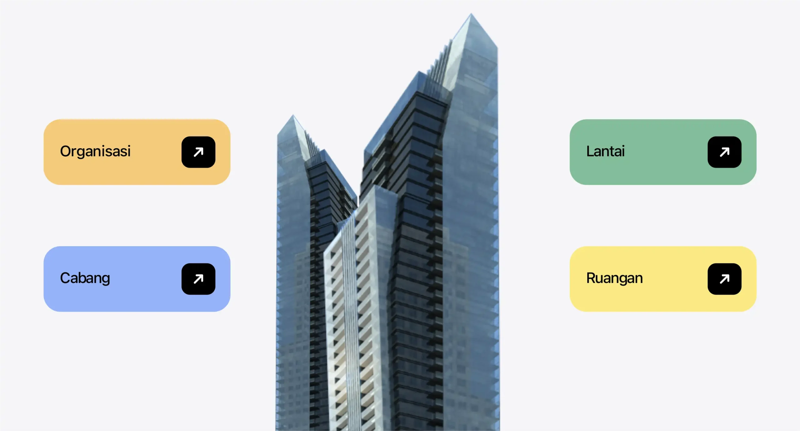Cabang, gedung, lantai, ruangan, departemen, cost center, project
