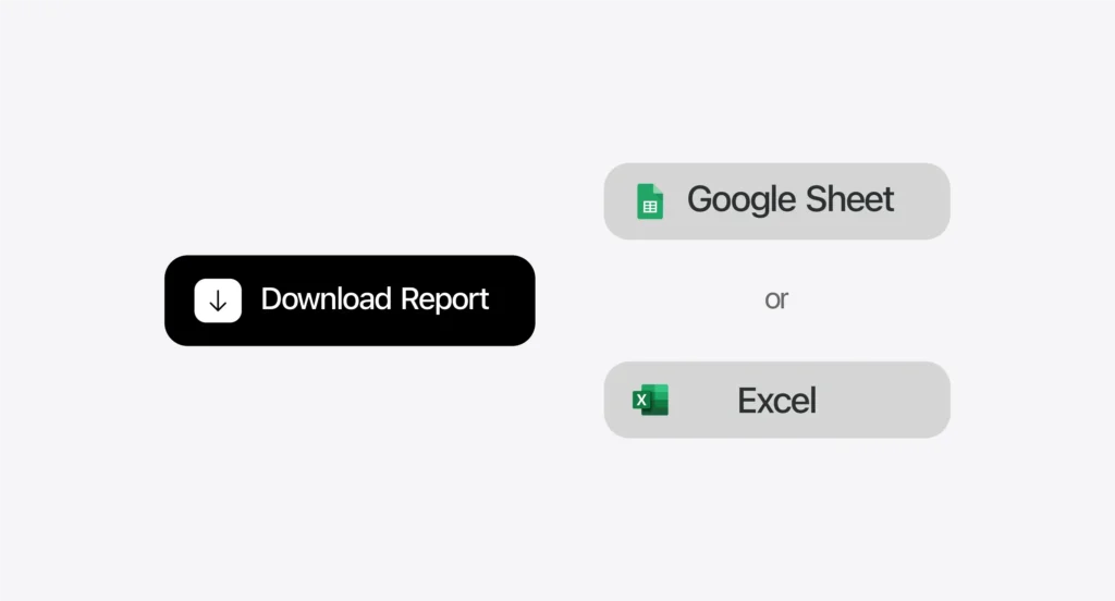 Dashboard ringkas, report inti, filter data, export Excel/Google Sheet
